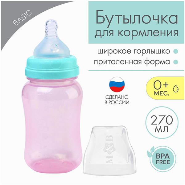 Бутылочка для кормления, широкое горло, 270 мл, розовый/бирюзовый (№9269321) 9269321"Товары для новорожденных" магазин / опт / розница /маркетплейсЛиквидация магазина! Скидки 50% за наличные!Цена указана с 50% скидкой при покупке за наличные и при предъявлении карточки товара на кассеМагазин точно работает, приходите и выбирайте лично с ПН по ПТ с 10-00 до 18-00; СБ с 11:00 до 17:00Новосибирск, Электрозаводская, 4Покупки в магазине от 1 руб.Доставка по Новосибирску - Яндекс доставка за Ваш счет - оплата за товар перед отправкой.Доставка в другие города - доставка любыми ТК при покупке от 5000 руб, Доставка до ТК 500 руб.*Расцветки в ассортименте. На фото представлен просто пример. Именно этой расцветки может уже не быть.*Наличие именно этой расцветки и этого товара не гарантируем, так как распродажа, много заказов. Остатки обновляем 1 раз в неделю по субботамДополнительноБутылочка из полипропилена мало весит, поэтому её удобно давать ребёнку. Износостойкий материал прослужит около 2 лет.ОсобенностиСиликоновая соска не имеет вкуса и запаха.Средний поток оптимален для молока, молочных смесей, воды и чая.Рёбра жёсткости соски не дают ей сминаться во время кормления.Кольцо бутылочки имеет рельефные элементы, имитирующие ареолы груди.Выпуклая мерная шкала помогает точно определить объём питания.Эргономичная форма ёмкости разработана специально для удобного захвата.Изделие не содержит бисфенол А.Детская бутылочка изготовлена в России из сырья отечественного производства. Все материалы сертифицированы и безопасны для здоровья новорождённых. Полипропилен и силикон не выделяют вредных веществ при стерилизации и контакте с жидкостью.КомплектацияТак же в этой линейке:Поильник - непроливайка с силиконовым носиком 270 млБутылочка для кормления с ручками 270 млОбщиеТорговая марка Mum&BabyАртикул 9269321Сертификат ЕАССтрана производитель РоссияСостав Полипропилен, силиконСерия Basic M&BУпаковка и фасовкаВ боксе 6 штукФасовка по 1 шт.Индивидуальная упаковка Без упаковкиРазмер упаковки (Длина х Ширина х Высота) 9 см х 8,5 см х 20 смГабариты и весВес брутто 80 гОсобенностиНабор НетС ручками НетВозраст Для детей, От 0 месяцевОбъём, мл 270Форма соски КлассическаяСкорость потока СреднийРисунок НетМатериал ПолипропиленСъёмная ручка ДаМатериал соски СиликонТип горлышка ШирокоеАнтиколиковая система НетДля детей до 3 лет Да
