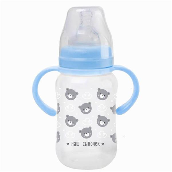 Бутылочка для кормления, широкое горло «Сыночек», 270 мл., с ручками (№10328442) 10328442"Товары для новорожденных" магазин / опт / розница /маркетплейсЛиквидация магазина! Скидки 50% за наличные!Цена указана с 50% скидкой при покупке за наличные и при предъявлении карточки товара на кассеМагазин точно работает, приходите и выбирайте лично с ПН по ПТ с 10-00 до 18-00; СБ с 11:00 до 17:00Новосибирск, Электрозаводская, 4Покупки в магазине от 1 руб.Доставка по Новосибирску - Яндекс доставка за Ваш счет - оплата за товар перед отправкой.Доставка в другие города - доставка любыми ТК при покупке от 5000 руб, Доставка до ТК 500 руб.*Расцветки в ассортименте. На фото представлен просто пример. Именно этой расцветки может уже не быть.*Наличие именно этой расцветки и этого товара не гарантируем, так как распродажа, много заказов. Остатки обновляем 1 раз в неделю по субботамДополнительноБутылочка из полипропилена мало весит, поэтому её удобно давать ребёнку. Износостойкий материал прослужит около 2 лет.ОсобенностиСиликоновая соска не имеет вкуса и запаха.Средний поток оптимален для молока, молочных смесей, воды и чая.Рёбра жёсткости соски не дают ей сминаться во время кормления.Кольцо бутылочки имеет рельефные элементы, имитирующие ареолы груди.Выпуклая мерная шкала помогает точно определить объём питания.Эргономичная форма ёмкости разработана специально для удобного захвата.Изделие не содержит бисфенол А.Детская бутылочка изготовлена в России из сырья отечественного производства. Все материалы сертифицированы и безопасны для здоровья новорождённых. Полипропилен и силикон не выделяют вредных веществ при стерилизации и контакте с жидкостью.ОбщиеТорговая марка Mum&BabyАртикул 10328442Сертификат ЕАССтрана производитель РоссияСостав Полипропилен, силиконСерия Любимый сыночек M&BУпаковка и фасовкаВ боксе 6 штукФасовка по 1 шт.Индивидуальная упаковка Без упаковкиРазмер упаковки (Длина х Ширина х Высота) 9 см х 11 см х 21 смГабариты и весРазмер (Длина х Ширина х Высота) 5 см х 7 см х 17,5 смВес брутто 90 гОсобенностиНабор НетС ручками ДаВозраст От 3 месяцевОбъём, мл 270Форма соски КлассическаяМатериал ПолипропиленМатериал соски СиликонТип горлышка ШирокоеАнтиколиковая система Нет