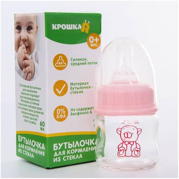 Бутылочка для кормления, стекло., 60 мл., «Мишка малыш», цвет розовый (№4729893) 4729893"Товары для новорожденных" магазин / опт / розница /маркетплейсЛиквидация магазина! Скидки 50% за наличные!Цена указана с 50% скидкой при покупке за наличные и при предъявлении карточки товара на кассеМагазин точно работает, приходите и выбирайте лично с ПН по ПТ с 10-00 до 18-00; СБ с 11:00 до 17:00Новосибирск, Электрозаводская, 4Покупки в магазине от 1 руб.Доставка по Новосибирску - Яндекс доставка за Ваш счет - оплата за товар перед отправкой.Доставка в другие города - доставка любыми ТК при покупке от 5000 руб, Доставка до ТК 500 руб.*Расцветки в ассортименте. На фото представлен просто пример. Именно этой расцветки может уже не быть.*Наличие именно этой расцветки и этого товара не гарантируем, так как распродажа, много заказов. Остатки обновляем 1 раз в неделю по субботамМаксимальный комфорт при вскармливании малыша.Бутылочка имеет мягкую и гибкую соску, которая не слипнется и будет удобно располагаться у малыша во рту.?Бутылочка состоит из полностью перерабатываемого боросиликатного стекла высшего качестване содержит бисфенол-Авыдерживает даже резкие перепады температурподходит для мытья в посудомоечной машинене впитывает вкусы и запахиантиколиковая системадолговечность в использовании