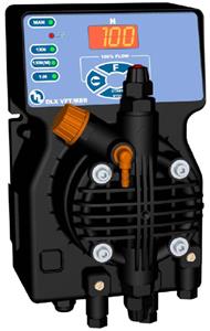 Тип: Мембранный . Версия: Цифровая . Напряжение: 220 В. Мощность: 58 Вт. Производительность: 20 л/ч. Рабочее давление: 3 бар. Материал корпуса: Пластик . Режим дозирования: Постоянный / Пропорциональный . Регулировка производительности: Ручная . Диапазон температуры: 0..+40 °С. Глубина всасывания: 2 м. Длина: 150 мм. Ширина: 120 мм. Высота: 190 мм. Класс защиты: IP65 . Входное отверстие: 4х6 мм . Выходное отверстие: 4х6 мм . Объем импульса: 2.6 мл. Длина хода пистона: 2.2 мм. Количество импульсов: 120 имп/мин. Вес: 2.9 кг. Установка: настенная Режимы работы от расходомера: умножения 1xN, умножения с памятью 1xN(M), деления 1:N Описание: Насосы–дозаторы применяются для точного дозирования химических реагентов в безнапорной и напорной системе. Производительность насосы регулируется изменением объема импульсов и частоты. Материалы для изготовления насосов, устойчивые к большинству химических реагентов, позволяя дозировать сложные органические и неорганические соединения концентрированные, кислоты и щелочи. Производительность насосов может регулироваться, изменением частоты и длинны хода. Это позволяет получить максимально точное дозирование насоса даже при постоянно меняющемся противодавлении. Пропорциональный дозирующий насос от импульсного водомера с микропроцессорным управлением. Антикислотный пластиковый корпус с панелью управления защищенной пленкой от УФ излучения. Область применения: • Химическая и фармацевтическая • Пищевая промышленность • Пивоваренные заводы и производство напитков • Очистка сточных вод и подготовка питьевой воды. Буквенные обозначения: E – стандартная головка PVDF 2-15 л/ч с ручным клапаном стравливания воздуха B – стандартная головка ПП для насосов 20 л/ч C – стандартная головка ПВХ для насосов с противодавлением 20 бар За дополнительную плату возможны исполнения DLXB и R/C, уточняйте у менеджера: Модификация DLXB - трансформация насоса DLX (настенное крепление) в модель DLXB (горизонтальное крепление) Модификация R/C – KIT R/C (для DLXB) - крышка насоса DLXB с ручкой регулировки длины пистона