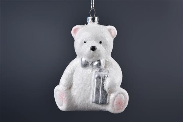 Елочное украшение Мишка с подарком 10920-1047 10см 267214