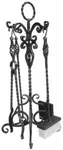 Материал: Сталь . Цвет: Черный . Высота: 900 мм. Ширина: 420 мм. Глубина: 420 мм. Вес: 10 кг. Комплектация: совок, кочерга, щетка, щипцы Описание : Кованный каминный набор модели N110Ч для напольного размещения от компании Везувий, применяется для обслуживания каминов и печей, а также поддержания чистоты вокруг домашнего очага. С помощью данных принадлежностей вы легко и безопасно очистите топку от старой золы или разворошите тлеющие угли и добавите новые дрова. Такие аксессуары, как кочерги, совки, метлы удобнее приобретать готовым комплектом (набором), так как они будут выполнены в едином стиле и отлично дополнят интерьер.