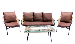 Вместимость: 5 чел. Материал: Искусственный ротанг / Сталь / Ткань / Стекло . Габариты стола (ДхШхВ): 1110х610х460 мм. Габариты дивана (ДхШхВ): 1740х760х800 мм. Габариты стула/кресла (ДхШхВ): 700х760х800 мм. Форма стола: Прямоугольная . Комплектация: Стол (1 шт.) / Кресло (2 шт.) / Диван (1 шт.) / Подушка (8 шт.) . Цвет: Черный / Коричневый / Бежевый . Допустимая нагрузка на диван: 250 кг Допустимая нагрузка на кресло: 90 кг Цвет чехла мягкого элемента/матраса: коричневый Толщина мягкого элемента: 7 см Описание: Комплект мебели Селена включает в себя большой стол со стеклянной столешницей, два кресла и трехместный диван. Комплект имеет устойчивую конструкцию. Данная мебель отлично подходит для установки на садовых участках, террасах, в уличных кафе и ресторанах. Особенности: • Прочная конструкция, выдерживающая высокие нагрузки • Стильный дизайн • Удобные посадочные места • Быстрая сборка