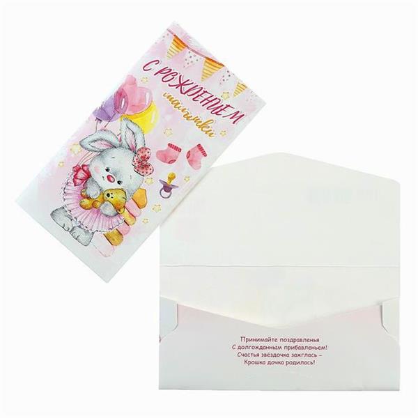 Конверт для денег "С Рождением Малышки!" глиттер, зайка...Подробнее…