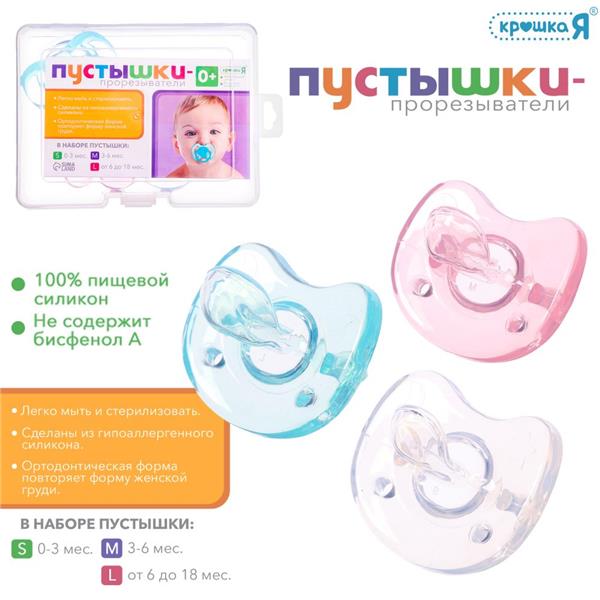 КРОШКА Я Набор Прорезывателей 3 пустышки SL-07110 (№10419813) 10419813"Товары для новорожденных" магазин / опт / розница /маркетплейсЛиквидация магазина! Скидки 50% за наличные!Цена указана с 50% скидкой при покупке за наличные и при предъявлении карточки товара на кассеМагазин точно работает, приходите и выбирайте лично с ПН по ПТ с 10-00 до 18-00; СБ с 11:00 до 17:00Новосибирск, Электрозаводская, 4Покупки в магазине от 1 руб.Доставка по Новосибирску - Яндекс доставка за Ваш счет - оплата за товар перед отправкой.Доставка в другие города - доставка любыми ТК при покупке от 5000 руб, Доставка до ТК 500 руб.*Расцветки в ассортименте. На фото представлен просто пример. Именно этой расцветки может уже не быть.*Наличие именно этой расцветки и этого товара не гарантируем, так как распродажа, много заказов. Остатки обновляем 1 раз в неделю по субботам