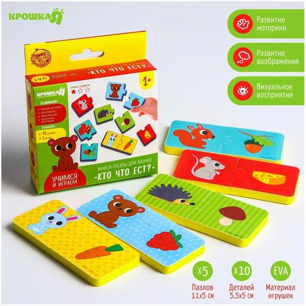 Мягкий пазл для малышей «Кто что ест?», 5 пазлов,...Подробнее…