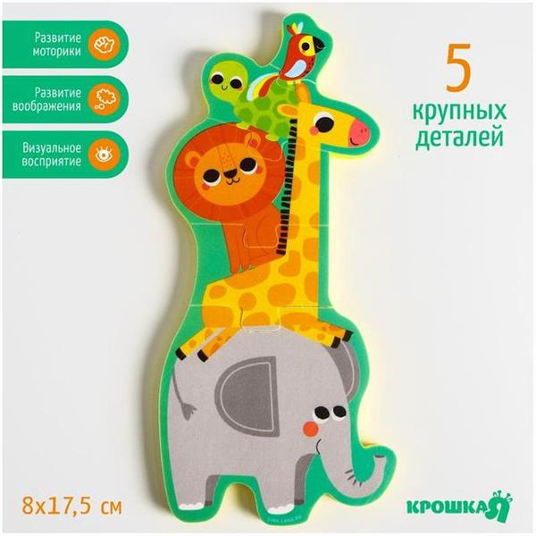 Мягкий пазл для малышей «Пирамидка: Африка», 5 деталей, Крошка Я (№5302620) 5302620"Товары для новорожденных" магазин / опт / розница /маркетплейсЛиквидация магазина! Скидки 50% за наличные!Цена указана с 50% скидкой при покупке за наличные и при предъявлении карточки товара на кассеМагазин точно работает, приходите и выбирайте лично с ПН по ПТ с 10-00 до 18-00; СБ с 11:00 до 17:00Новосибирск, Электрозаводская, 4Покупки в магазине от 1 руб.Доставка по Новосибирску - Яндекс доставка за Ваш счет - оплата за товар перед отправкой.Доставка в другие города - доставка любыми ТК при покупке от 5000 руб, Доставка до ТК 500 руб.*Расцветки в ассортименте. На фото представлен просто пример. Именно этой расцветки может уже не быть.*Наличие именно этой расцветки и этого товара не гарантируем, так как распродажа, много заказов. Остатки обновляем 1 раз в неделю по субботамЗабавные игрушки из мягкого материала не тонут в воде и при намокании приклеиваются к кафелю или ванне.Изделия выполнены в виде пазлов, которые нужно соединять друг с другом, чтобы собрать единую картинку.Игрушки способствуют развитию воображения и мелкой моторики рук малыша.ОбщиеТорговая марка Крошка ЯАртикул 5302620Сертификат ЕАССтрана производитель КитайСостав EVA, PVCСерия Макси-пазлы Крошка ЯУпаковка и фасовкаВ боксе 700 штукФасовка по 10 штукИндивидуальная упаковка Клапан, пакетРазмер упаковки (Длина х Ширина х Высота) 23,5 см х 12 см х 1 смГабариты и весРазмер (Длина х Ширина х Высота) 17,5 см х 0,8 см х 23,5 смВес брутто 20 гОсобенностиНабор ДаЦвет РазноцветныйДля кого УнисексВозраст Детский, Детям от 0 до 3 лет, От 1 годаКоличество элементов 5Тематика Животный мирРисунок ДаМатериал EVAЗвук НетЖанр игры РазвивающаяРазвитие навыков Воображение, Моторика, Фигуры, цветаДополнительные функции РазвивающаяВид пирамидки КлассическаяТип пазлов ГоловоломкиФорма ФигурныйОсобенности Без особенностей