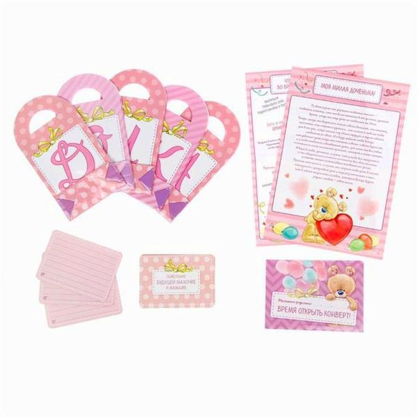 Набор бланков "Всё, что нужно для проводов в декрет" (№1322861) 1322861"Товары для новорожденных" магазин / опт / розница /маркетплейсЛиквидация магазина! Скидки 50% за наличные!Цена указана с 50% скидкой при покупке за наличные и при предъявлении карточки товара на кассеМагазин точно работает, приходите и выбирайте лично с ПН по ПТ с 10-00 до 18-00; СБ с 11:00 до 17:00Новосибирск, Электрозаводская, 4Покупки в магазине от 1 руб.Доставка по Новосибирску - Яндекс доставка за Ваш счет - оплата за товар перед отправкой.Доставка в другие города - доставка любыми ТК при покупке от 5000 руб, Доставка до ТК 500 руб.*Расцветки в ассортименте. На фото представлен просто пример. Именно этой расцветки может уже не быть.*Наличие именно этой расцветки и этого товара не гарантируем, так как распродажа, много заказов. Остатки обновляем 1 раз в неделю по субботамБеременность — радостное событие для каждой женщины. Поддержать подругу в столь ответственное и счастливое время поможет этот набор. В состав набора входят 5 пакетов (12 х 15 см) с буквами, из которых составляется слово «дочка». Также в нём вы найдёте бланк для письма малышу в будущее, список дел «Успеть во время декрета» и 15 бланков для пожеланий. Каждый пакет предназначен для определённых вещей, адресованных мамочке или ребёнку: для пожеланий; для советов «Успеть во время декрета»; для подарков; для письма в будущее; конверт, который нужно открыть после родов. Заполните все бланки, разложите по нужным пакетам, добавьте немного креатива, теплоты и небольших сюрпризов, и незабываемое поздравление для будущей мамочки готово!
