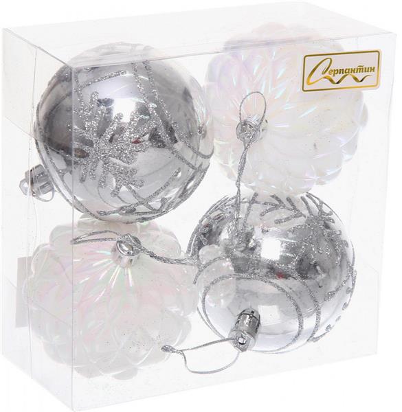 Набор елочных шаров 4шт 7см Метелица белый/серебро 201-5154