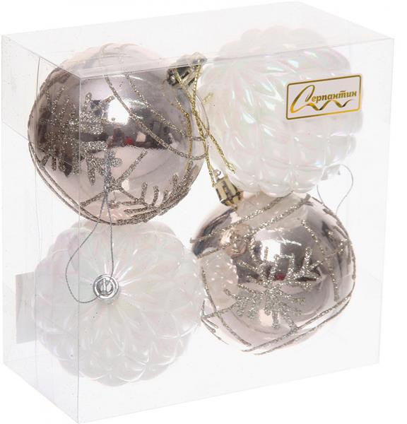 Набор елочных шаров 4шт 7см Метелица белый/шампань 201-5152