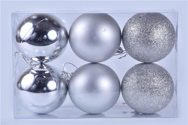 Набор елочных шаров 6шт 80мм NYLR0002-4 серебро 257593