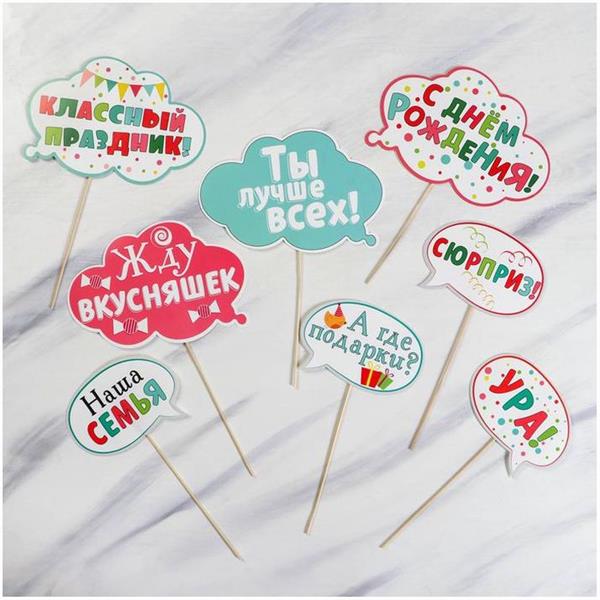 Набор фотобутафории "День Рождения", детский, 8 шт., (№1610529) 1610529"Товары для новорожденных" магазин / опт / розница /маркетплейсЛиквидация магазина! Скидки 50% за наличные!Цена указана с 50% скидкой при покупке за наличные и при предъявлении карточки товара на кассеМагазин точно работает, приходите и выбирайте лично с ПН по ПТ с 10-00 до 18-00; СБ с 11:00 до 17:00Новосибирск, Электрозаводская, 4Покупки в магазине от 1 руб.Доставка по Новосибирску - Яндекс доставка за Ваш счет - оплата за товар перед отправкой.Доставка в другие города - доставка любыми ТК при покупке от 5000 руб, Доставка до ТК 500 руб.*Расцветки в ассортименте. На фото представлен просто пример. Именно этой расцветки может уже не быть.*Наличие именно этой расцветки и этого товара не гарантируем, так как распродажа, много заказов. Остатки обновляем 1 раз в неделю по субботамХотите на своём празднике слышать смех, видеть радостные лица гостей и делать оригинальные фотографии ? Мы поможем осуществить желаемое! набор, состоящий из 8 табличек, наполнит торжество весельем, а также зарядит вас прекрасным настроением! Особенные снимки будут ещё долгое время дарить счастливые воспоминания.Изделия выполнены из картона. Поставляются в пакете с подложкой.Дополнительно"Классный праздник" 18 х 13,4 см;"Жду вкусняшек" 18 х 13,4 см;"Ты лучше всех" 18 х 13,4 см;"С Днем Рождения" 18 х 13,4 см;"Наша семья" 11,8 х 8,4 см;"Где подарки" 11,8 х 8,4 см;"Сюрприз" 11,8 х 8,4 см;"Ура!" 11,8 х 8,4 см.ОбщиеТорговая марка Страна КарнавалияАртикул 1610529Сертификат Не подлежит сертификацииСтрана производитель РоссияСостав Дерево, картонСерия С Днем рожденияУпаковка и фасовкаВ боксе 80 наборовФасовка по 1 наборуИндивидуальная упаковка ПакетРазмер упаковки (Длина х Ширина х Высота) 29 см х 19 см х 1,3 смГабариты и весВес брутто 46 гОсобенностиНабор ДаЦвет РазноцветныйДля кого УнисексПлотность, г/м? 250Количество элементов 8Вид упаковки Пакет, ПодложкаТематика праздника День рожденияМатериал Дерево, Мелованный картон