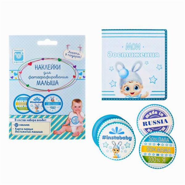 Набор наклеек (12 шт для мальчика) для фотографирования малыша с картой достижений (№2017591) 2017591"Товары для новорожденных" магазин / опт / розница /маркетплейсЛиквидация магазина! Скидки 50% за наличные!Цена указана с 50% скидкой при покупке за наличные и при предъявлении карточки товара на кассеМагазин точно работает, приходите и выбирайте лично с ПН по ПТ с 10-00 до 18-00; СБ с 11:00 до 17:00Новосибирск, Электрозаводская, 4Покупки в магазине от 1 руб.Доставка по Новосибирску - Яндекс доставка за Ваш счет - оплата за товар перед отправкой.Доставка в другие города - доставка любыми ТК при покупке от 5000 руб, Доставка до ТК 500 руб.*Расцветки в ассортименте. На фото представлен просто пример. Именно этой расцветки может уже не быть.*Наличие именно этой расцветки и этого товара не гарантируем, так как распродажа, много заказов. Остатки обновляем 1 раз в неделю по субботамОбщиеАртикул 2017591Сертификат Не подлежит сертификацииСтрана производитель КитайСостав Бумага, картонСерия Малыш (сувениры для новорождённых)Упаковка и фасовкаВ боксе 500 наборовФасовка по 1 наборуИндивидуальная упаковка ПакетРазмер упаковки (Длина х Ширина х Высота) 15 см х 12 см х 0,3 смГабариты и весРазмер (Длина х Ширина х Высота) 15 см х 12 см х 0,3 смВес брутто 32 гОсобенностиНабор ДаЦвет ГолубойТематика праздника Универсальная тематика
