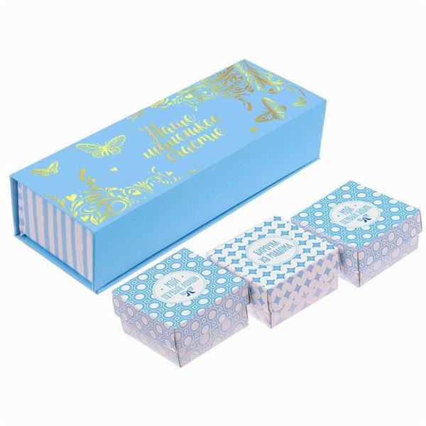 Набор памятных коробочек для мальчика "Наше маленькое счастье" (№2843189) 2843189"Товары для новорожденных" магазин / опт / розница /маркетплейсЛиквидация магазина! Скидки 50% за наличные!Цена указана с 50% скидкой при покупке за наличные и при предъявлении карточки товара на кассеМагазин точно работает, приходите и выбирайте лично с ПН по ПТ с 10-00 до 18-00; СБ с 11:00 до 17:00Новосибирск, Электрозаводская, 4Покупки в магазине от 1 руб.Доставка по Новосибирску - Яндекс доставка за Ваш счет - оплата за товар перед отправкой.Доставка в другие города - доставка любыми ТК при покупке от 5000 руб, Доставка до ТК 500 руб.*Расцветки в ассортименте. На фото представлен просто пример. Именно этой расцветки может уже не быть.*Наличие именно этой расцветки и этого товара не гарантируем, так как распродажа, много заказов. Остатки обновляем 1 раз в неделю по субботамСвойства:Материал = КартонМатериал = Картон 7БЦЦвет = ГолубойПол = Для мальчика