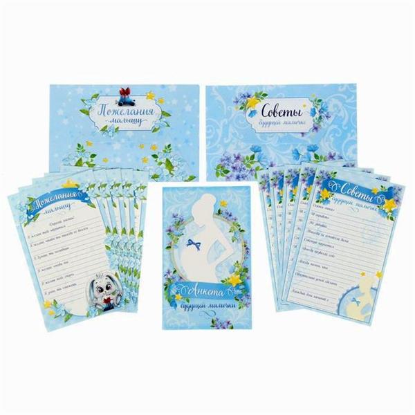 Набор для проводов в декрет "Советы и пожелания будущей мамочке" (№1325959) 1325959"Товары для новорожденных" магазин / опт / розница /маркетплейсЛиквидация магазина! Скидки 50% за наличные!Цена указана с 50% скидкой при покупке за наличные и при предъявлении карточки товара на кассеМагазин точно работает, приходите и выбирайте лично с ПН по ПТ с 10-00 до 18-00; СБ с 11:00 до 17:00Новосибирск, Электрозаводская, 4Покупки в магазине от 1 руб.Доставка по Новосибирску - Яндекс доставка за Ваш счет - оплата за товар перед отправкой.Доставка в другие города - доставка любыми ТК при покупке от 5000 руб, Доставка до ТК 500 руб.*Расцветки в ассортименте. На фото представлен просто пример. Именно этой расцветки может уже не быть.*Наличие именно этой расцветки и этого товара не гарантируем, так как распродажа, много заказов. Остатки обновляем 1 раз в неделю по субботамБеременность — радостное событие для каждой женщины. Поддержать подругу или коллегу в столь ответственный и счастливый момент поможет Набор для проводов в декрет "Советы и пожелания будущей мамочке".Состав:бланки для советов — 5 шт.;бланки для пожеланий малышу — 5 шт.;анкета-открытка.Нежный дизайн набора будет поднимать обладательнице настроение каждый день. В анкете она опишет свои эмоции во время этого чудесного периода. Напишите на бланках советы, которые пригодятся мамочке в декрете. Карточки с добрыми словами она сохранит в конвертах, а когда малютка подрастёт, сможет прочитать их вместе с ним.