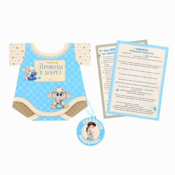 Набор - сумочка "Проводы в декрет" (№1326908) 1326908"Товары для новорожденных" магазин / опт / розница /маркетплейсЛиквидация магазина! Скидки 50% за наличные!Цена указана с 50% скидкой при покупке за наличные и при предъявлении карточки товара на кассеМагазин точно работает, приходите и выбирайте лично с ПН по ПТ с 10-00 до 18-00; СБ с 11:00 до 17:00Новосибирск, Электрозаводская, 4Покупки в магазине от 1 руб.Доставка по Новосибирску - Яндекс доставка за Ваш счет - оплата за товар перед отправкой.Доставка в другие города - доставка любыми ТК при покупке от 5000 руб, Доставка до ТК 500 руб.*Расцветки в ассортименте. На фото представлен просто пример. Именно этой расцветки может уже не быть.*Наличие именно этой расцветки и этого товара не гарантируем, так как распродажа, много заказов. Остатки обновляем 1 раз в неделю по субботамВаша коллега беременна? Поддержите её в столь ответственный и счастливый момент, а поможет вам в этом подарочный набор.В комплект входят:фигурный конверт;медаль;бланк для заполнения (2 шт.);схема пеленания малыша.Набор отлично впишется в интерьер дома благодаря нежным и приятным цветам и оригинальной форме в виде детского комбинезона.