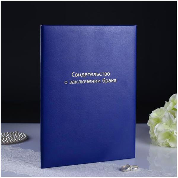 Папка для свидетельства о браке "Синяя" бумвинил,...Подробнее…