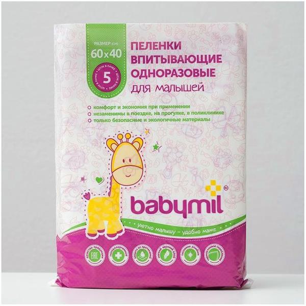 Пеленки впитывающие одноразовые «Babymil» Эконом, 60*40, 5...Подробнее…
