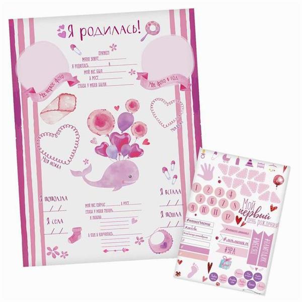 Плакат для новорожденной с наклейками "Я родилась"...Подробнее…