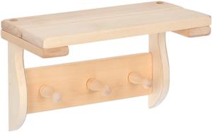 Высота: 180 мм. Описание: Полка Банные штучки с вешалкой станет незаменимым приобретением для размещения различной банной утвари и предметов одежды. Полка изготовлена из натуральных экологически чистых пород древесины и не подвержена воздействиям высоких температур и влажности.