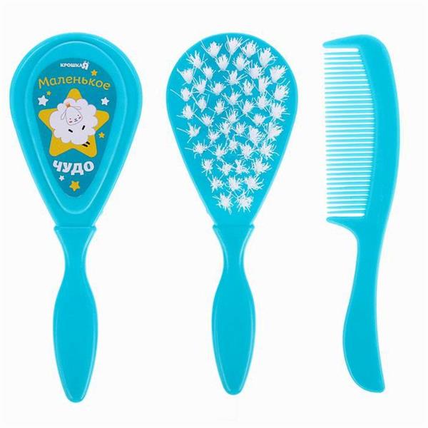 Расчёска детская + массажная щётка для волос «Маленькое чудо», от 0 мес., цвет бирюзовый (№3039818) 3039818"Товары для новорожденных" магазин / опт / розница /маркетплейсЛиквидация магазина! Скидки 50% за наличные!Цена указана с 50% скидкой при покупке за наличные и при предъявлении карточки товара на кассеМагазин точно работает, приходите и выбирайте лично с ПН по ПТ с 10-00 до 18-00; СБ с 11:00 до 17:00Новосибирск, Электрозаводская, 4Покупки в магазине от 1 руб.Доставка по Новосибирску - Яндекс доставка за Ваш счет - оплата за товар перед отправкой.Доставка в другие города - доставка любыми ТК при покупке от 5000 руб, Доставка до ТК 500 руб.*Расцветки в ассортименте. На фото представлен просто пример. Именно этой расцветки может уже не быть.*Наличие именно этой расцветки и этого товара не гарантируем, так как распродажа, много заказов. Остатки обновляем 1 раз в неделю по субботамРасческа-щетка с мягкой щетиной и удобная расческа с закругленными зубчиками предназначены для малышей с первых дней жизни.Мягкая пушистая щетка имеет удобную эргономичную ручку, улучшает кровообращение кожи головы, не царапая её. Нежный массаж расслабляет и успокаивает перед сном, а стимуляция волосяных луковиц ускоряет рост первых волос малыша. Щетка с мягким ворсом позволит пригладить волосики и придать им аккуратный вид. А с помощью расчески с частыми закругленными зубчиками удобно расчесывать запутавшиеся и скатавшиеся волосы.Изделия изготовлены из безопасного материала - не содержат бисфенол А.ДополнительноРасчёска с частыми зубцами поможет привести в порядок тонике детские волосы.С помощью щётки из мягкой щетины удобно делать нежный массаж головы.Изделия выполнены из безопасных материалов, которые не содержат вредных веществ.ОбщиеТорговая марка Крошка ЯАртикул 3039818Сертификат ЕАССтрана производитель КитайСостав ПластикУпаковка и фасовкаВ боксе 288 наборовФасовка по 1 наборуИндивидуальная упаковка БлистерРазмер упаковки (Длина х Ширина х Высота) 23 см х 9,5 см х 2,5 смГабариты и весРазмер (Длина х Ширина х Высота) 10 см х 3 см х 21 смВес брутто 36 гОсобенностиНабор ДаЦвет БирюзовыйВ наборе, шт. 2Рисунок ДаМатериал Нейлон, ПластикТип расчёски Простая, С ручкойСоставляющие набора Расчёска для волос, Щётка
