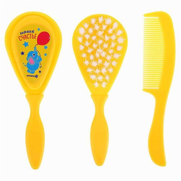 Расчёска детская + массажная щётка для волос «Наше счастье», от 0 мес., цвет жёлтый (№3039821) 3039821"Товары для новорожденных" магазин / опт / розница /маркетплейсЛиквидация магазина! Скидки 50% за наличные!Цена указана с 50% скидкой при покупке за наличные и при предъявлении карточки товара на кассеМагазин точно работает, приходите и выбирайте лично с ПН по ПТ с 10-00 до 18-00; СБ с 11:00 до 17:00Новосибирск, Электрозаводская, 4Покупки в магазине от 1 руб.Доставка по Новосибирску - Яндекс доставка за Ваш счет - оплата за товар перед отправкой.Доставка в другие города - доставка любыми ТК при покупке от 5000 руб, Доставка до ТК 500 руб.*Расцветки в ассортименте. На фото представлен просто пример. Именно этой расцветки может уже не быть.*Наличие именно этой расцветки и этого товара не гарантируем, так как распродажа, много заказов. Остатки обновляем 1 раз в неделю по субботамРасческа-щетка с мягкой щетиной и удобная расческа с закругленными зубчиками предназначены для малышей с первых дней жизни.Мягкая пушистая щетка имеет удобную эргономичную ручку, улучшает кровообращение кожи головы, не царапая её. Нежный массаж расслабляет и успокаивает перед сном, а стимуляция волосяных луковиц ускоряет рост первых волос малыша. Щетка с мягким ворсом позволит пригладить волосики и придать им аккуратный вид. А с помощью расчески с частыми закругленными зубчиками удобно расчесывать запутавшиеся и скатавшиеся волосы.Изделия изготовлены из безопасного материала - не содержат бисфенол А.ДополнительноРасчёска с частыми зубцами поможет привести в порядок тонике детские волосы.С помощью щётки из мягкой щетины удобно делать нежный массаж головы.Изделия выполнены из безопасных материалов, которые не содержат вредных веществ.ОбщиеТорговая марка Крошка ЯАртикул 3039821Сертификат ЕАССтрана производитель КитайСостав ПластикУпаковка и фасовкаВ боксе 288 наборовФасовка по 1 наборуИндивидуальная упаковка БлистерРазмер упаковки (Длина х Ширина х Высота) 23 см х 9,5 см х 2,5 смГабариты и весРазмер (Длина х Ширина х Высота) 10 см х 3 см х 21 смВес брутто 48 гОсобенностиНабор ДаЦвет ЖёлтыйВ наборе, шт. 2Рисунок ДаМатериал Нейлон, ПластикТип расчёски Простая, С ручкойСоставляющие набора Расчёска для волос, Щётка
