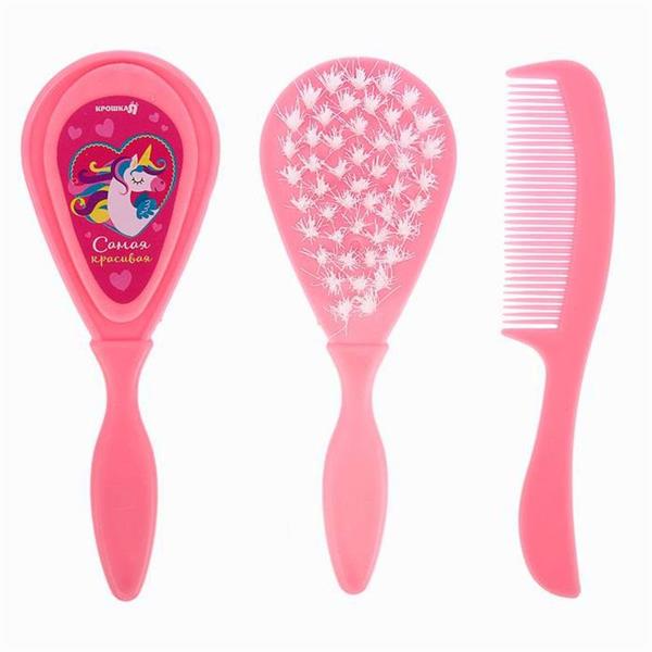 Расчёска детская + массажная щётка для волос «Самая красивая», от 0 мес., цвет розовый (№3039819) 3039819"Товары для новорожденных" магазин / опт / розница /маркетплейсЛиквидация магазина! Скидки 50% за наличные!Цена указана с 50% скидкой при покупке за наличные и при предъявлении карточки товара на кассеМагазин точно работает, приходите и выбирайте лично с ПН по ПТ с 10-00 до 18-00; СБ с 11:00 до 17:00Новосибирск, Электрозаводская, 4Покупки в магазине от 1 руб.Доставка по Новосибирску - Яндекс доставка за Ваш счет - оплата за товар перед отправкой.Доставка в другие города - доставка любыми ТК при покупке от 5000 руб, Доставка до ТК 500 руб.*Расцветки в ассортименте. На фото представлен просто пример. Именно этой расцветки может уже не быть.*Наличие именно этой расцветки и этого товара не гарантируем, так как распродажа, много заказов. Остатки обновляем 1 раз в неделю по субботамРасческа-щетка с мягкой щетиной и удобная расческа с закругленными зубчиками предназначены для малышей с первых дней жизни.Мягкая пушистая щетка имеет удобную эргономичную ручку, улучшает кровообращение кожи головы, не царапая её. Нежный массаж расслабляет и успокаивает перед сном, а стимуляция волосяных луковиц ускоряет рост первых волос малыша. Щетка с мягким ворсом позволит пригладить волосики и придать им аккуратный вид. А с помощью расчески с частыми закругленными зубчиками удобно расчесывать запутавшиеся и скатавшиеся волосы.Изделия изготовлены из безопасного материала - не содержат бисфенол А.ДополнительноРасчёска с частыми зубцами поможет привести в порядок тонике детские волосы.С помощью щётки из мягкой щетины удобно делать нежный массаж головы.Изделия выполнены из безопасных материалов, которые не содержат вредных веществ.ОбщиеТорговая марка Крошка ЯАртикул 3039819Сертификат ЕАССтрана производитель КитайСостав ПластикУпаковка и фасовкаВ боксе 288 наборовФасовка по 1 наборуИндивидуальная упаковка БлистерРазмер упаковки (Длина х Ширина х Высота) 23 см х 9,5 см х 2,5 смГабариты и весРазмер (Длина х Ширина х Высота) 10 см х 3 см х 21 смВес брутто 36 гОсобенностиНабор ДаЦвет РозовыйВ наборе, шт. 2Рисунок ДаМатериал Нейлон, ПластикТип расчёски Простая, С ручкойСоставляющие набора Расчёска для волос, Щётка