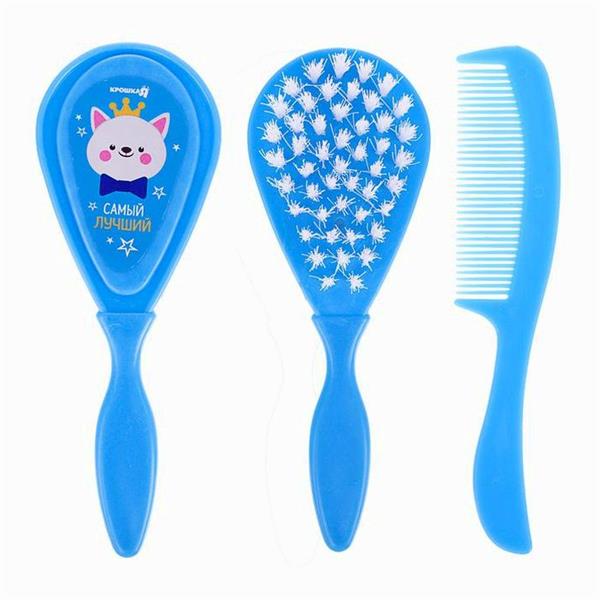 Расчёска детская + массажная щётка для волос «Самый лучший», от 0 мес., цвет голубой (№3039820) 3039820"Товары для новорожденных" магазин / опт / розница /маркетплейсЛиквидация магазина! Скидки 50% за наличные!Цена указана с 50% скидкой при покупке за наличные и при предъявлении карточки товара на кассеМагазин точно работает, приходите и выбирайте лично с ПН по ПТ с 10-00 до 18-00; СБ с 11:00 до 17:00Новосибирск, Электрозаводская, 4Покупки в магазине от 1 руб.Доставка по Новосибирску - Яндекс доставка за Ваш счет - оплата за товар перед отправкой.Доставка в другие города - доставка любыми ТК при покупке от 5000 руб, Доставка до ТК 500 руб.*Расцветки в ассортименте. На фото представлен просто пример. Именно этой расцветки может уже не быть.*Наличие именно этой расцветки и этого товара не гарантируем, так как распродажа, много заказов. Остатки обновляем 1 раз в неделю по субботамРасческа-щетка с мягкой щетиной и удобная расческа с закругленными зубчиками предназначены для малышей с первых дней жизни.Мягкая пушистая щетка имеет удобную эргономичную ручку, улучшает кровообращение кожи головы, не царапая её. Нежный массаж расслабляет и успокаивает перед сном, а стимуляция волосяных луковиц ускоряет рост первых волос малыша. Щетка с мягким ворсом позволит пригладить волосики и придать им аккуратный вид. А с помощью расчески с частыми закругленными зубчиками удобно расчесывать запутавшиеся и скатавшиеся волосы.Изделия изготовлены из безопасного материала - не содержат бисфенол А.ДополнительноРасчёска с частыми зубцами поможет привести в порядок тонике детские волосы.С помощью щётки из мягкой щетины удобно делать нежный массаж головы.Изделия выполнены из безопасных материалов, которые не содержат вредных веществ.ОбщиеТорговая марка Крошка ЯАртикул 3039820Сертификат ЕАССтрана производитель КитайСостав ПластикУпаковка и фасовкаВ боксе 288 наборовФасовка по 1 наборуИндивидуальная упаковка БлистерРазмер упаковки (Длина х Ширина х Высота) 23 см х 9,5 см х 2,5 смГабариты и весРазмер (Длина х Ширина х Высота) 10 см х 3 см х 21 смВес брутто 45 гОсобенностиНабор ДаЦвет ГолубойВ наборе, шт. 2Рисунок ДаМатериал Нейлон, ПластикТип расчёски Простая, С ручкойСоставляющие набора Расчёска для волос, Щётка