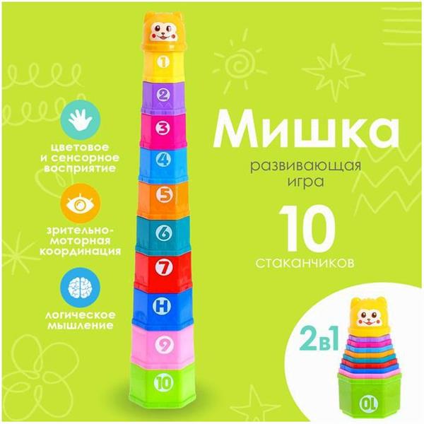 Развивающая игрушка «Пирамидка: Мишка», стаканчики с буквами и цифрами, 11 предметов (№1943043) 1943043"Товары для новорожденных" магазин / опт / розница /маркетплейсЛиквидация магазина! Скидки 50% за наличные!Цена указана с 50% скидкой при покупке за наличные и при предъявлении карточки товара на кассеМагазин точно работает, приходите и выбирайте лично с ПН по ПТ с 10-00 до 18-00; СБ с 11:00 до 17:00Новосибирск, Электрозаводская, 4Покупки в магазине от 1 руб.Доставка по Новосибирску - Яндекс доставка за Ваш счет - оплата за товар перед отправкой.Доставка в другие города - доставка любыми ТК при покупке от 5000 руб, Доставка до ТК 500 руб.*Расцветки в ассортименте. На фото представлен просто пример. Именно этой расцветки может уже не быть.*Наличие именно этой расцветки и этого товара не гарантируем, так как распродажа, много заказов. Остатки обновляем 1 раз в неделю по субботам«Пирамидка: Мишка» разовьёт у ребёнка мелкую моторику, воображение и мышление.С весёлой игрой малыш выучит цифры, английские буквы и цвета.Пирамидка состоит из 11 формочек, сверху устанавливается яркая игрушка с забавной мордочкой, завершающая конструкцию.ДополнительноРекомендовано детям старше 6 месяцев.ОбщиеАртикул 1943043Сертификат ЕАССтрана производитель КитайСостав ПластикУпаковка и фасовкаВ боксе 144 шт.Фасовка по 1 шт.Индивидуальная упаковка СеткаРазмер упаковки (Длина х Ширина х Высота) 7,5 см х 7 см х 16 смГабариты и весРазмер (Длина х Ширина х Высота) 7,5 см х 7 см х 16 смВес брутто 144 гОсобенностиВозраст От 6 месяцевКоличество элементов 10Материал ПластикРазвитие навыков Логика, Фигуры, цветаВид пирамидки Логическая