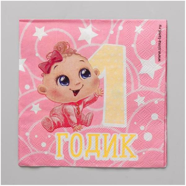 Салфетки бумажные «1 годик», малышка, 25х25см, набор 20...Подробнее…