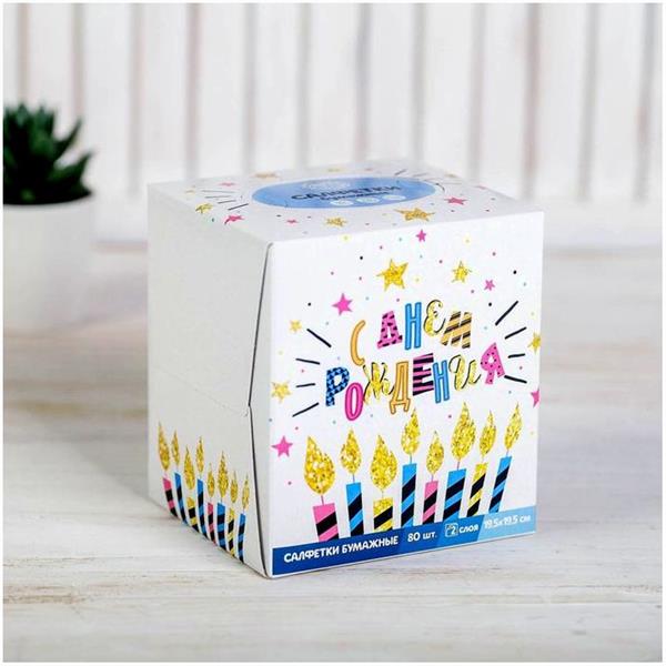 Салфетки бумажные в коробке «С днём рождения», 80 шт....Подробнее…