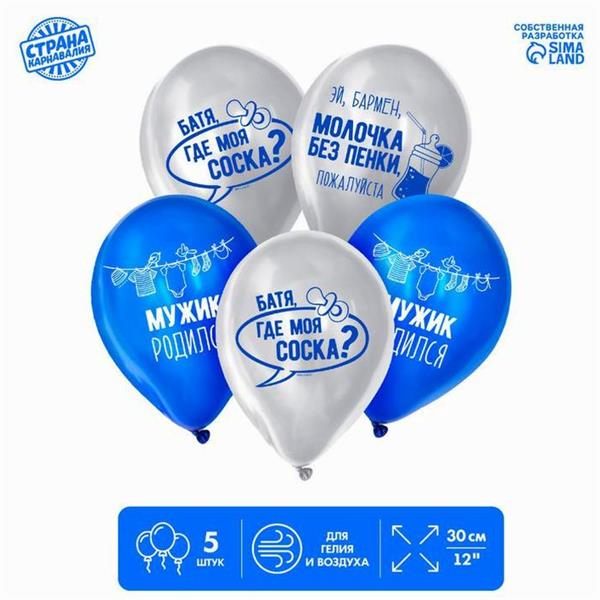 Шар воздушный 12" «Мужик родился», 1 ст., набор 5 шт...Подробнее…