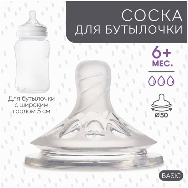 Соска силиконовая на бутылочку ШГ, ?50мм, +6 мес....Подробнее…