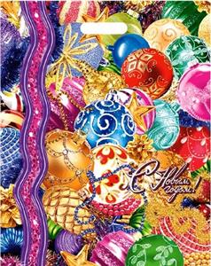 Сумка ПВД 41х51 прорубная ручка НГ Новогодние шары