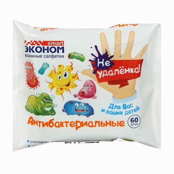 Влажные салфетки «Эконом Smart», детские антибактериальные, 60 шт. (№5446430) 5446430"Товары для новорожденных" магазин / опт / розница /маркетплейсЛиквидация магазина! Скидки 50% за наличные!Цена указана с 50% скидкой при покупке за наличные и при предъявлении карточки товара на кассеМагазин точно работает, приходите и выбирайте лично с ПН по ПТ с 10-00 до 18-00; СБ с 11:00 до 17:00Новосибирск, Электрозаводская, 4Покупки в магазине от 1 руб.Доставка по Новосибирску - Яндекс доставка за Ваш счет - оплата за товар перед отправкой.Доставка в другие города - доставка любыми ТК при покупке от 5000 руб, Доставка до ТК 500 руб.*Расцветки в ассортименте. На фото представлен просто пример. Именно этой расцветки может уже не быть.*Наличие именно этой расцветки и этого товара не гарантируем, так как распродажа, много заказов. Остатки обновляем 1 раз в неделю по субботамСалфетки влажные детские антибактериальные являются косметическим средством, эффективно и бережно очищают кожу рук, где бы вы ни были - дома, на прогулке, в гостях. Уничтожают 99,9% микробов. Оставляют ощущение свежести. Подходят для всей семьи. Не оставляют липкого ощущения на руках. Продукт прошел микробиологический контроль по показателю "собственная антимикробная активность".Размер салфетки: 11*19Плотность: 35 г/м2ОбщиеТорговая марка Эконом SmartАртикул 5446430Сертификат ЕАССтрана производитель РоссияСостав См. на упаковкеКол-во штук в наборе 60 шт.Цена за штуку --- ?Оптовая цена за штуку --- ?Упаковка и фасовкаВ боксе 30 наборовФасовка по 1 наборуИндивидуальная упаковка Без упаковкиРазмер упаковки (Длина х Ширина х Высота) 16 см х 12 см х 4,5 смГабариты и весВес брутто 165 гОсобенностиВ упаковке, шт. 60Вид салфеток Антибактериальные, Детские